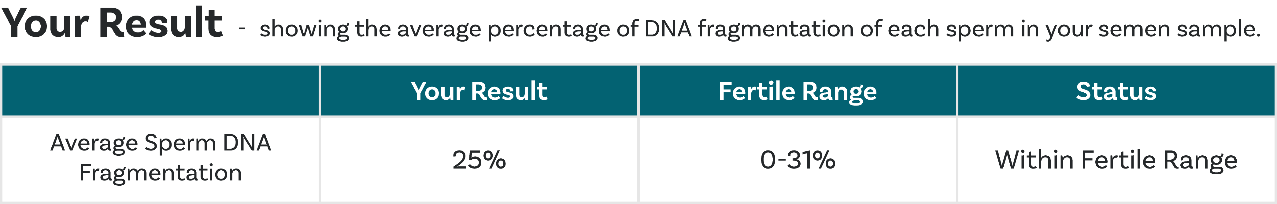 An Average SDF score from 0%-31% is within the fertile range, whereas a score greater than 31% is outside the fertile range and has an increased risk of infertility.